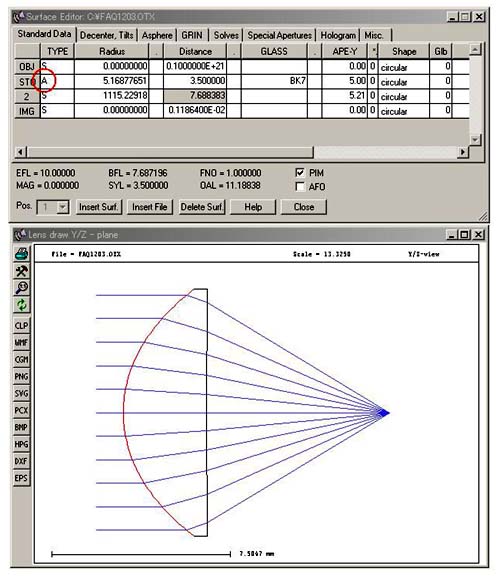 自動的にセットされる状態となります。ここで『近軸計算に基づく値』とは、面エディタ下方に表示された [BFL] の値
